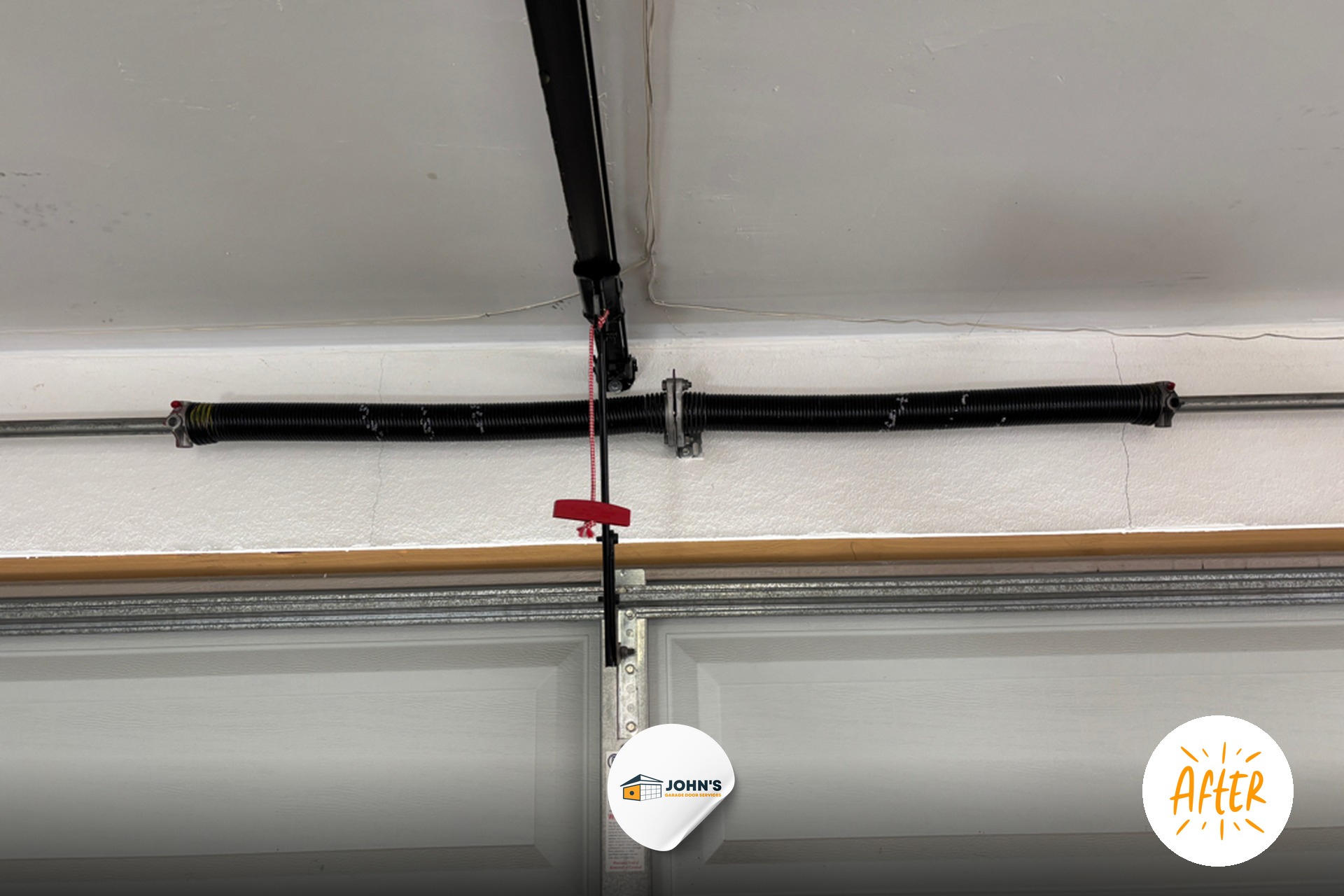 We removed and properly disposed of the old, broken torsion springs and installed new 30,000-cycle torsion springs designed for long-term durability. Our technicians also replaced the torsion cables and drums to ensure the entire lifting system worked in harmony. Each component was carefully calibrated for smooth, balanced operation.